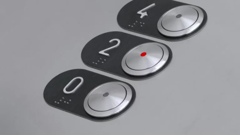 EN81-70 or EN81-71 class 1 extra large push-button with raised symbol and metal bezel, anti-fingerprint pressel. IP54 also available.