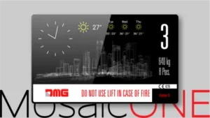 For displays in the lift car: the screen is equipped with typical EN81-70 symbols Alarm sent, Communication established, Overload.
