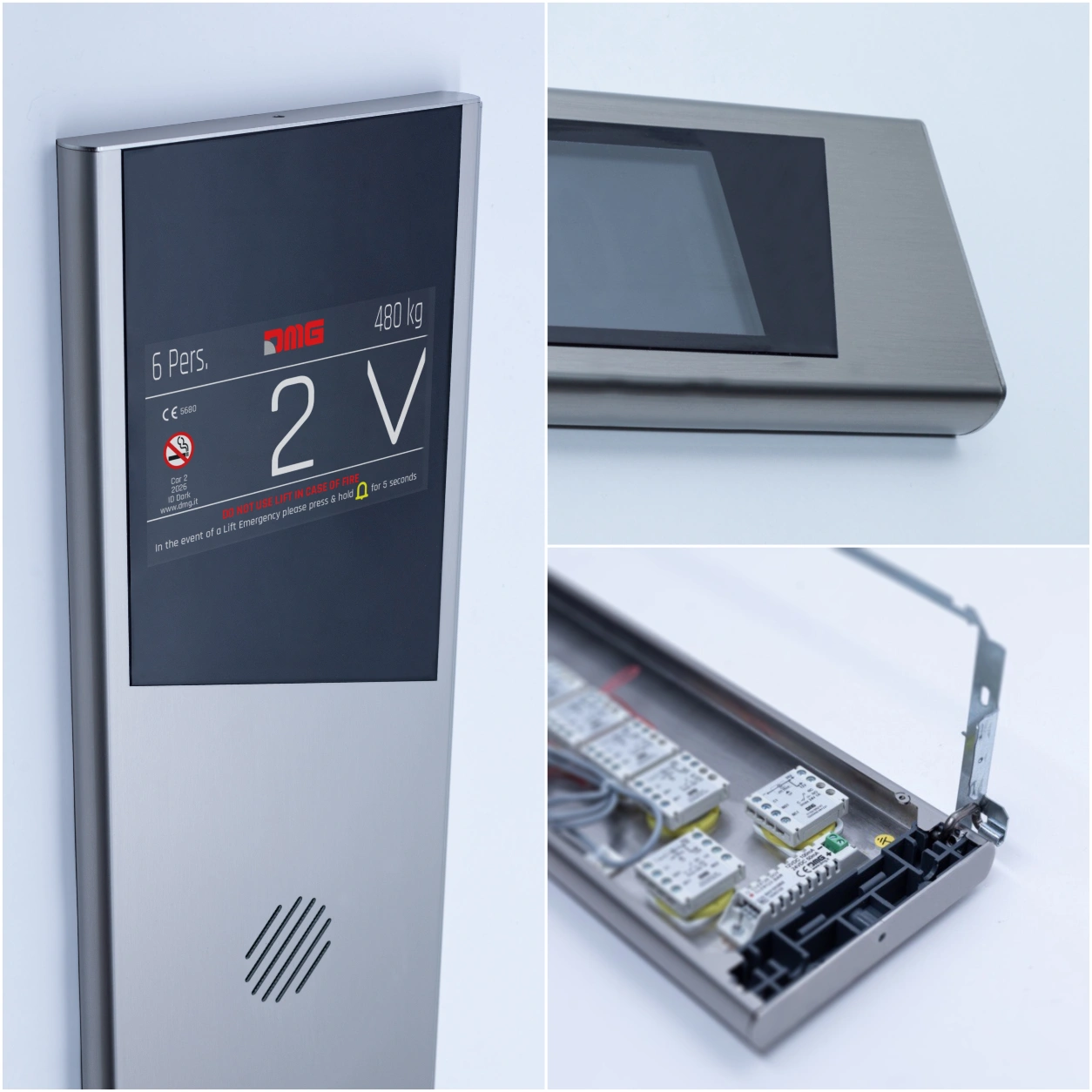 The CUT plates are also straightforward to install, thanks to a new and quick fixing method with sub-plate. Once the sub-plate has been fixed on the wall, the landing panels can be snapped in and fixed with a non visible screw, whereas car panels are engaged to two side hinges and then fixed with two hidden screws. Hinges allow side opening for comfortable and easy maintenance/inspection.